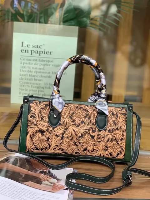 植鞣皮手工皮雕質感女包